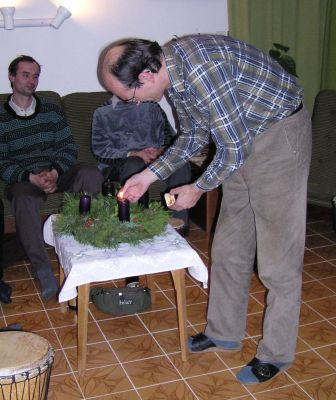 Svíčka na adventním věnci i oheň v krbu hodně přispěly ke sváteční atmosféře setkání.